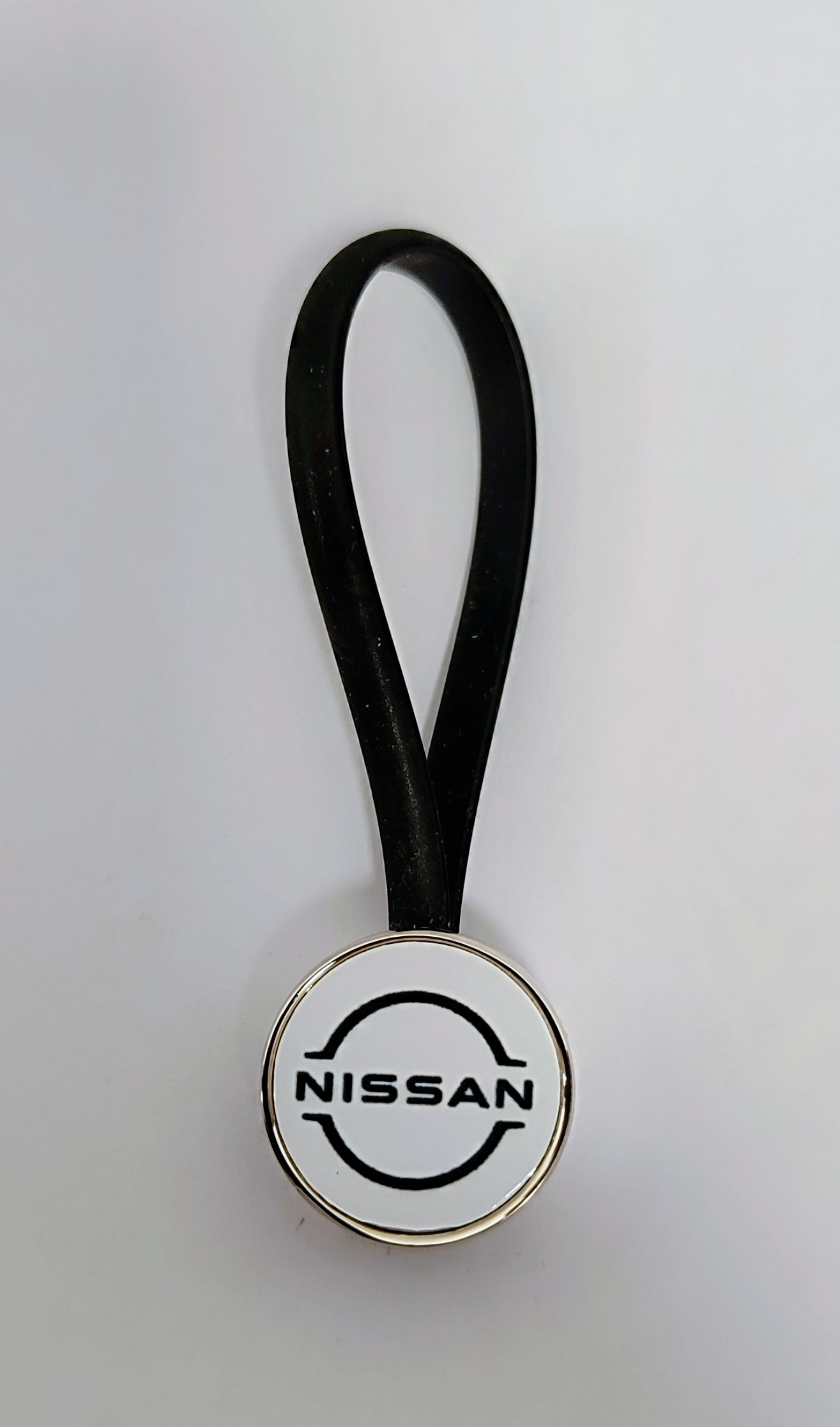 Брелок Nissan, білий круглий металевий з гумовим ремінцем, d=20 мм