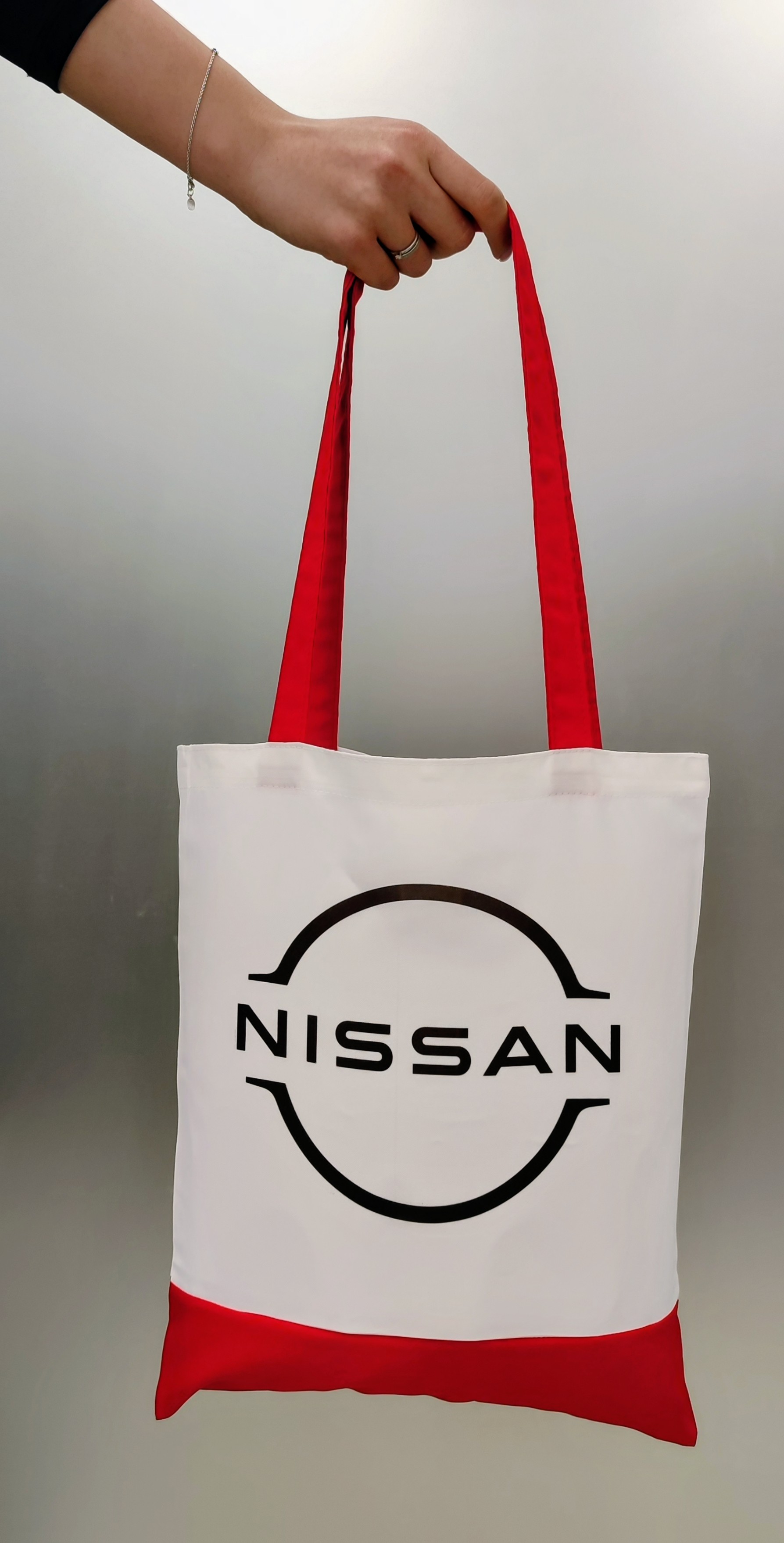 Сумка-шопер червона з білим, з логотипом Nissan, 32*38 см - купуйте в інтернет-магазині nissan-vidi.com.ua